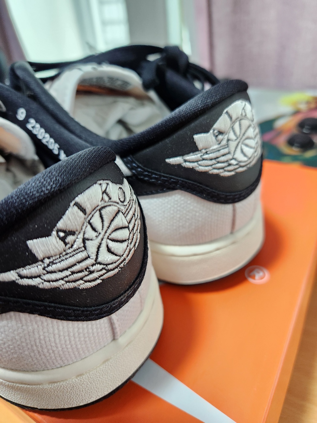 - 캔버스 (Canvas): 조던 1 KO 모델은 전통적인 가죽 대신 캔버스 소재로 제작되었습니다. 캔버스는 가볍고 내구성이 있으며 통기성이 좋기 때문에, 장시간 착용에도 편안함을 제공합니다. 캔버스는 다양한 색상과 패턴으로 인쇄가 가능해 스타일링에 유리합니다.