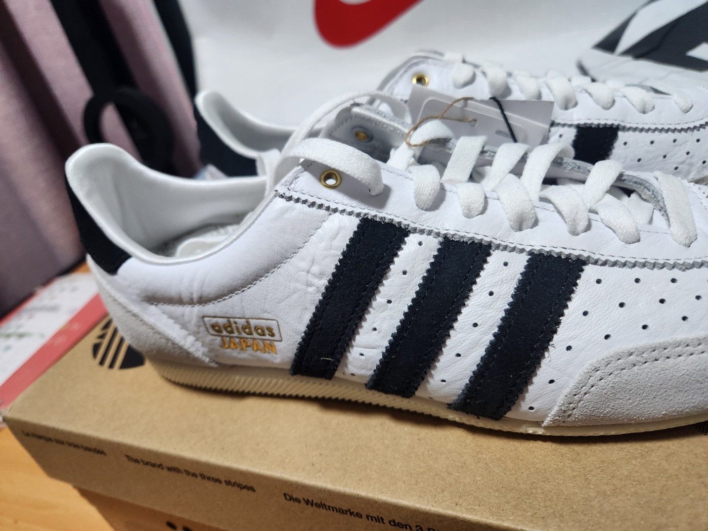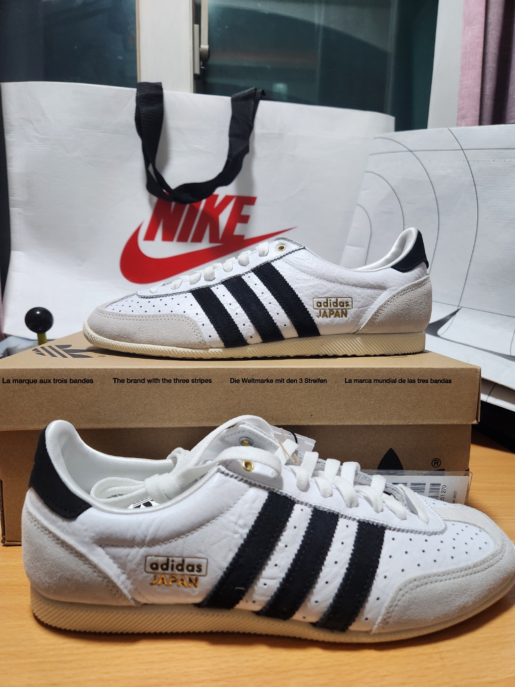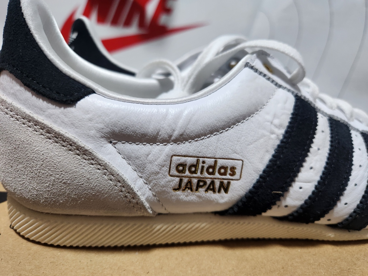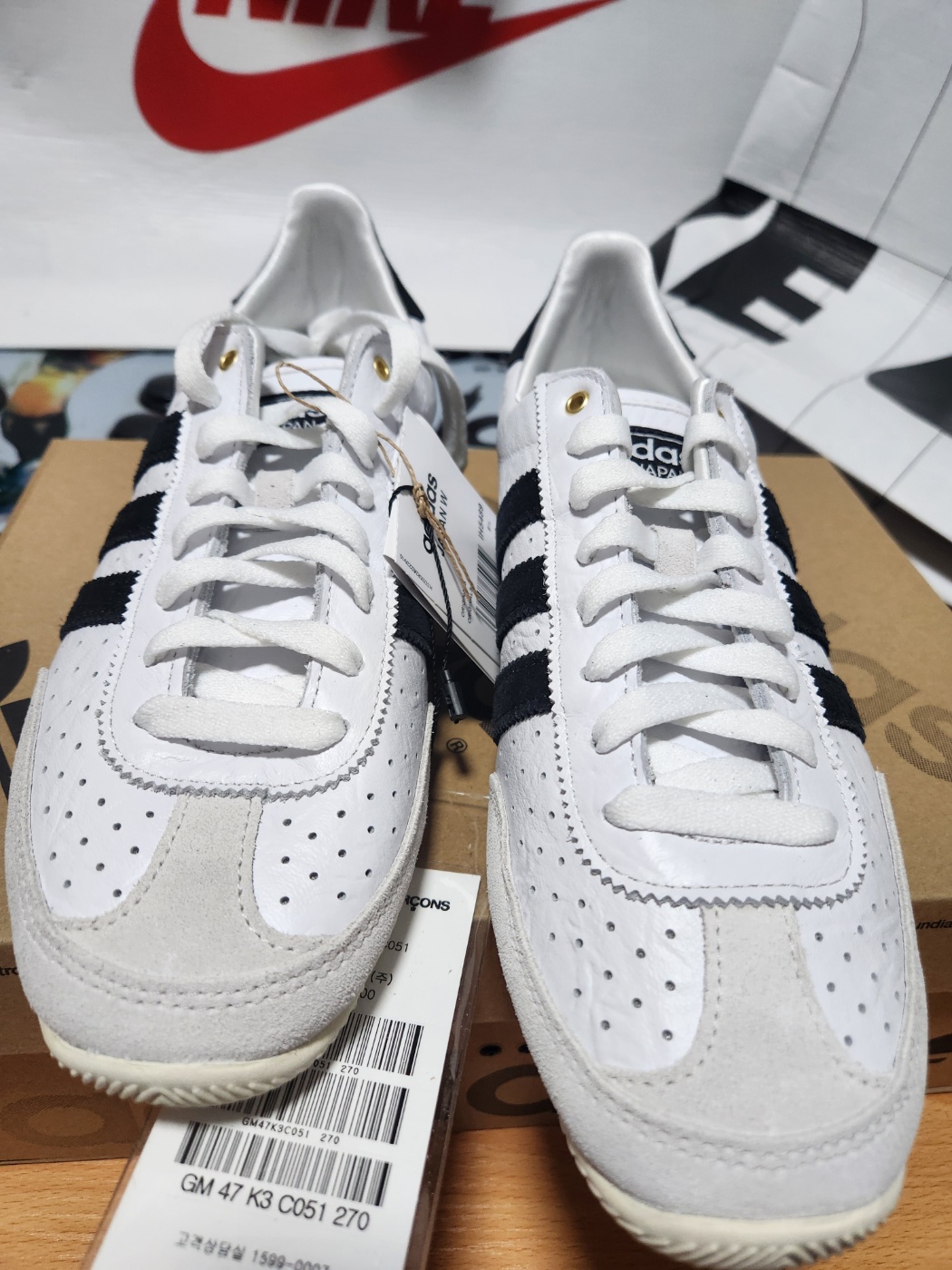 아디다스 재팬 클라우드 화이트 코어 블랙의 유일한 단점이라면 밝은 색상의 특성상 오염이 쉽게 보일 수 있다는 점입니다. 하지만 정기적인 관리와 가죽 클리너를 활용하면 오래도록 깨끗한 상태를 유지할 수 있습니다.