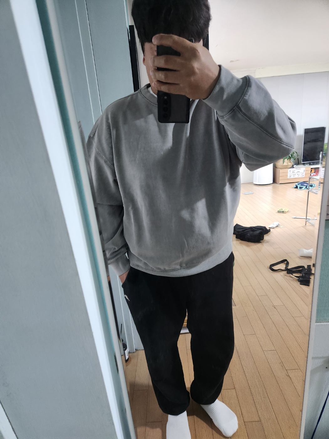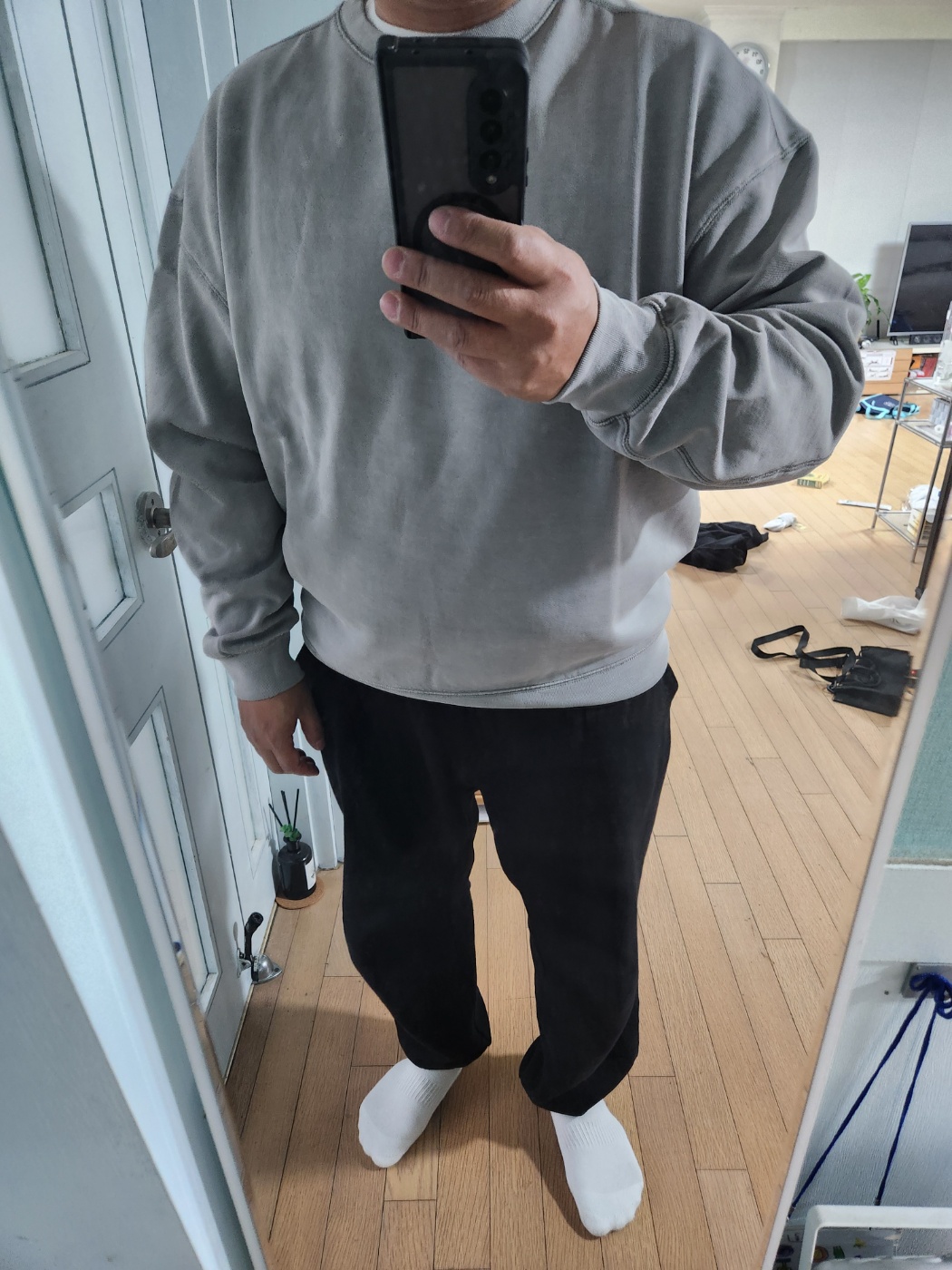 피그먼트 기모 스웨셔츠 그레이는 다양한 스타일링이 가능한 아이템이에요. 제가 직접 해본 몇 가지 스타일링을 공유합니다!