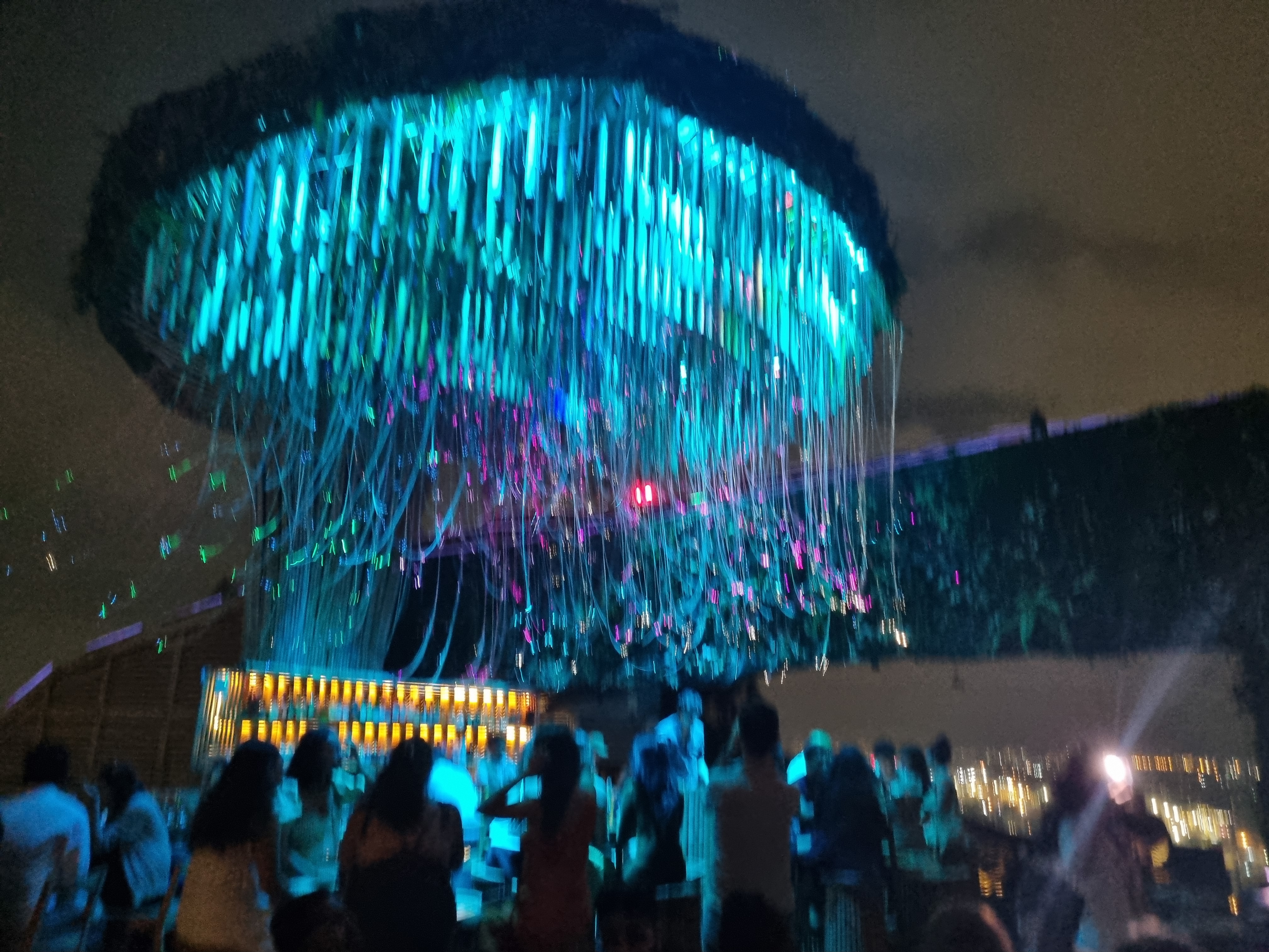 비 구름이 이동하는 모습을 높으곳에서 볼 수 있었고 루푸탑 바의 조명이 비에 반사되면서 더욱 멋있는 분위기 였습니다.