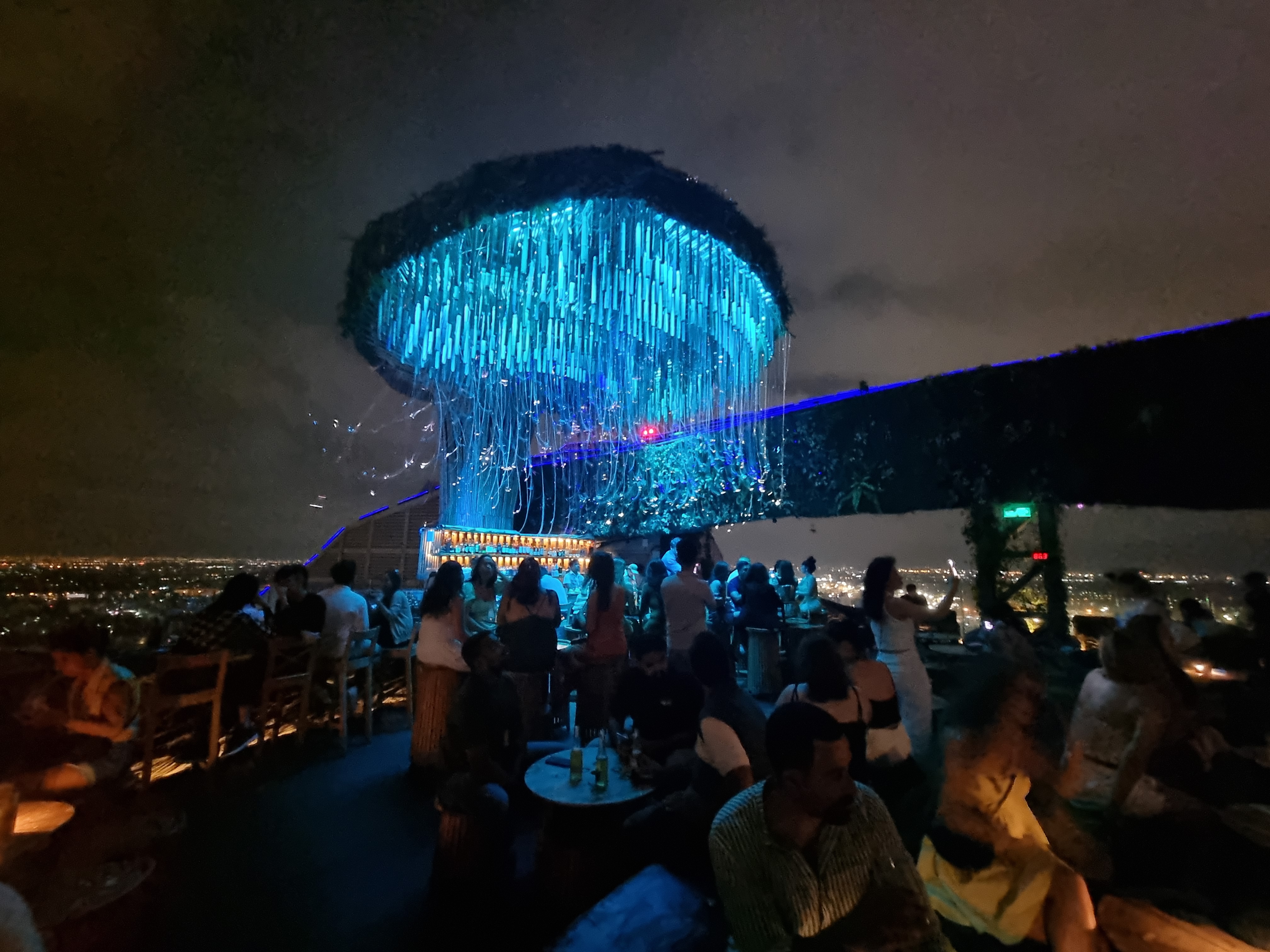 티츄카는 방콕의 중심지에 위치한 열대 정글 테마의 루프탑 바로, 아름다운 야경과 화려한 조명으로 유명합니다. 방콕의 고층 빌딩 사이에서 이국적인 분위기를 느낄 수 있는 것이 가장 큰 매력입니다. 특히, 네온 불빛으로 빛나는 바 내부와 거대한 LED 나무가 포토 스팟으로 인기가 많아 SNS에서도 핫한 장소로 떠오르고 있습니다.