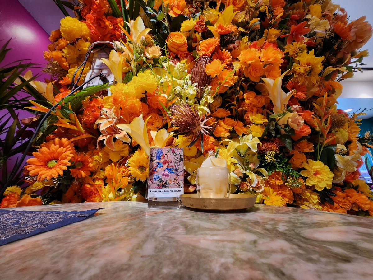 카페 내부는 마치 왕궁 속에 들어온 듯한 느낌을 주었어요. 태국 전통의 화려한 색감과 소품들이 어우러져 한 폭의 그림 같은 분위기를 연출하더군요.