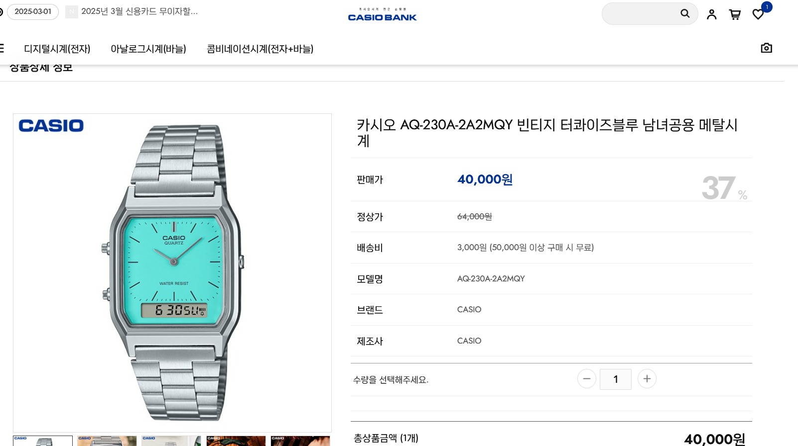- 블루 컬러 다이얼: AQ-230A-2A2MQY 모델은 블루 다이얼이 특징으로, 감각적이고 세련된 느낌을 줍니다.