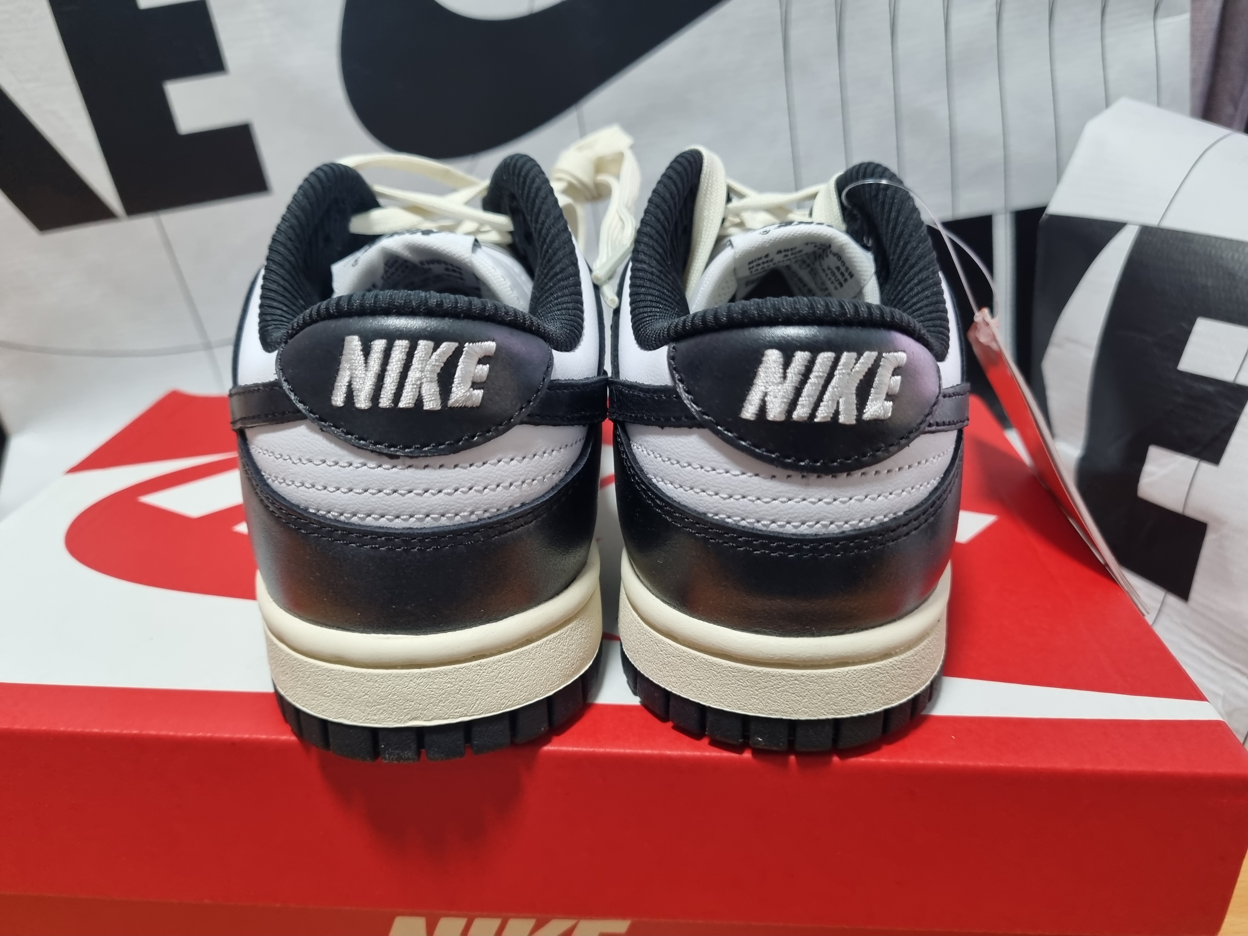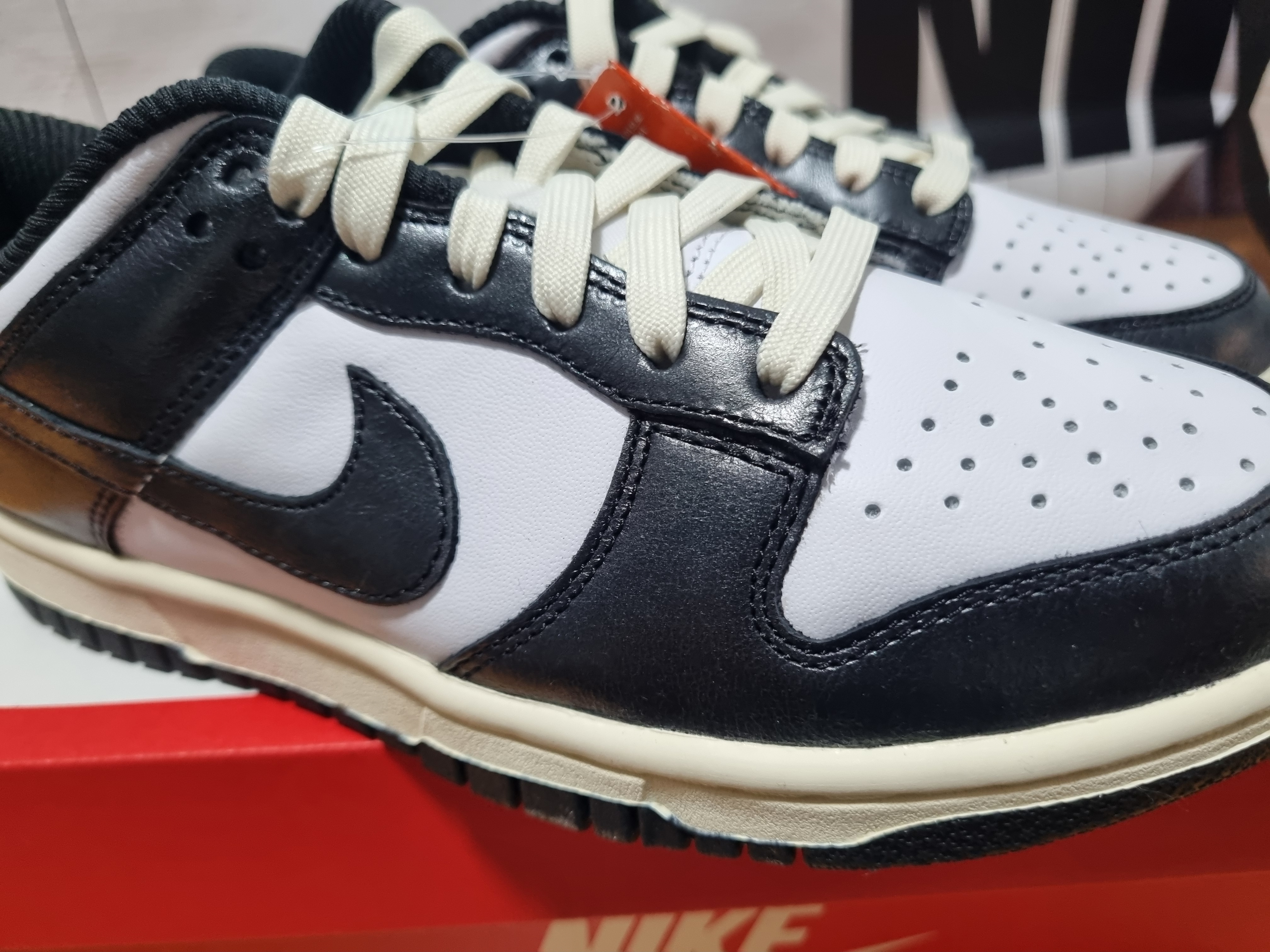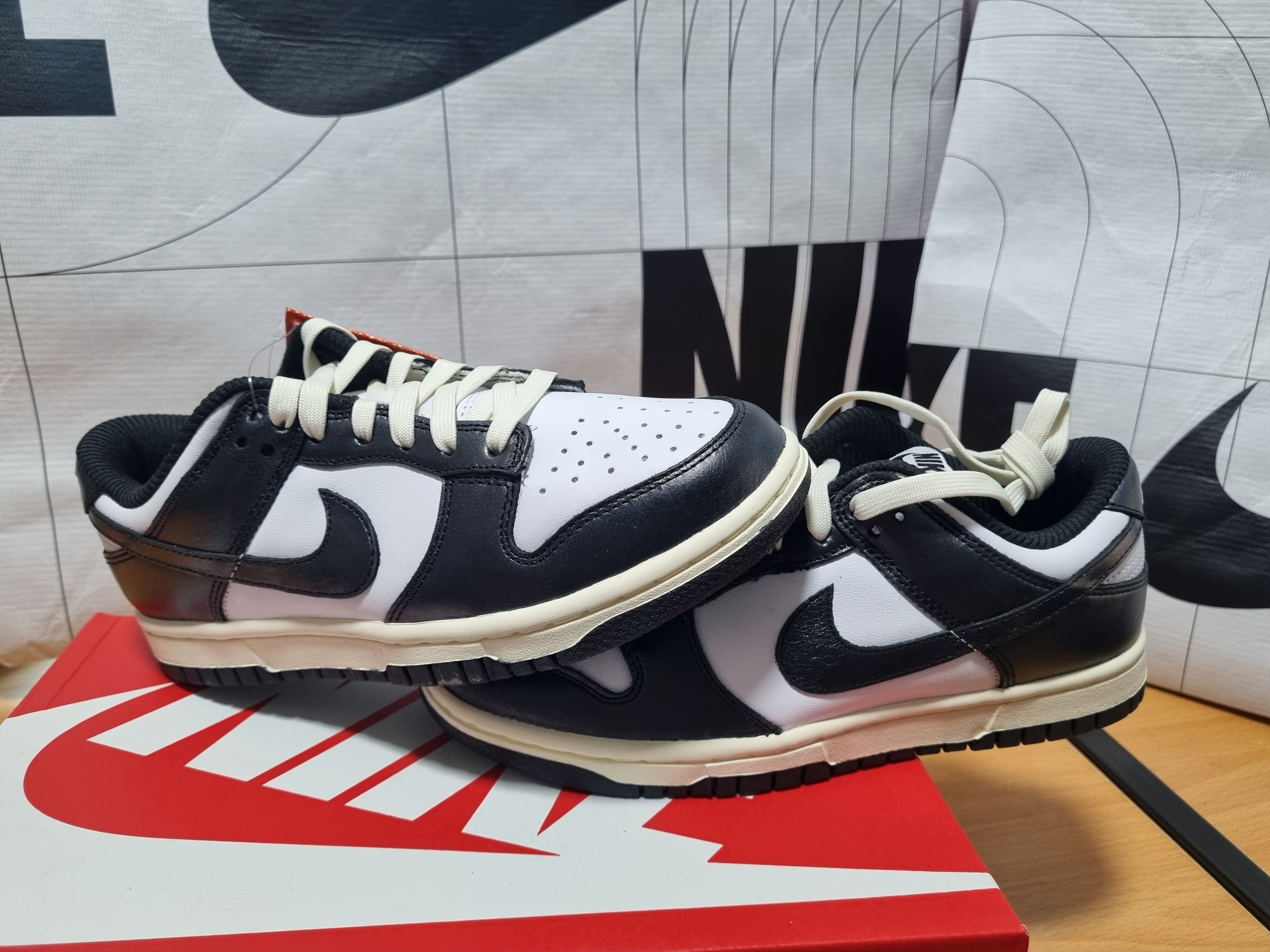 - 빈티지한 미드솔: 일반적인 덩크 로우 모델과 달리 미드솔 부분이 약간의 에이징 처리가 되어 있어 오래된 듯한 감성을 살렸습니다.