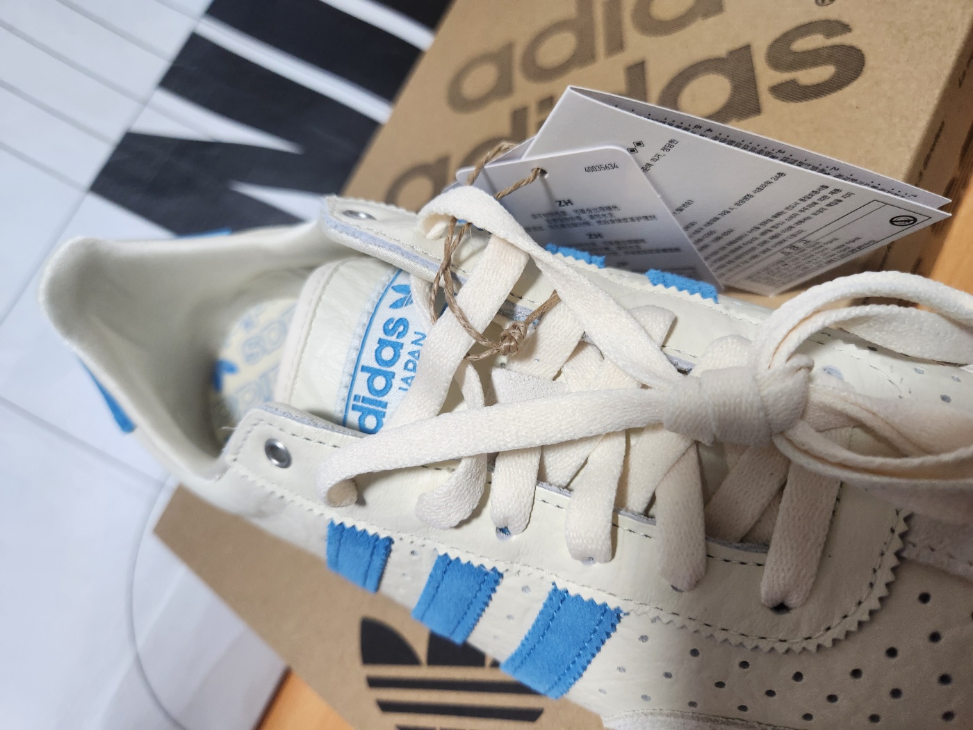 바로 아디다스 재팬 크림 화이트 블루 JR0556 여성용 모델입니다.