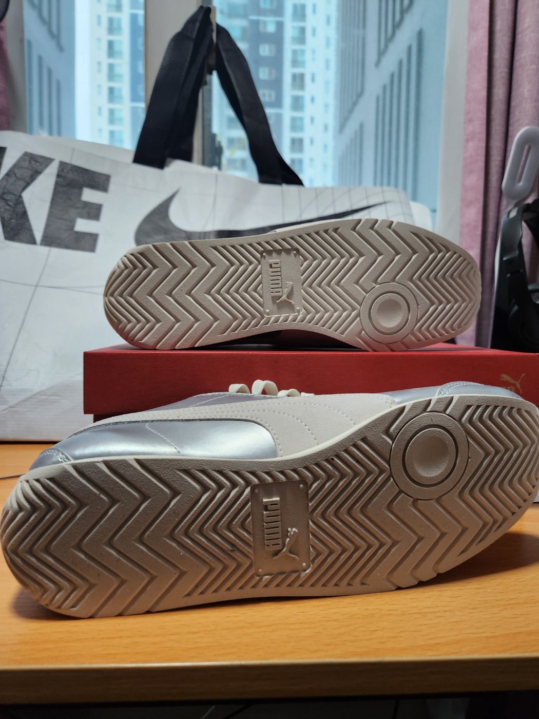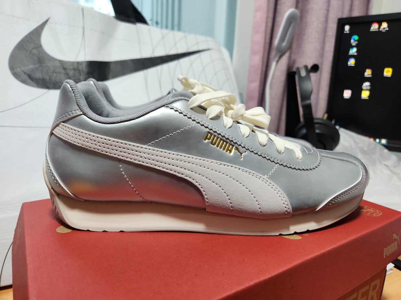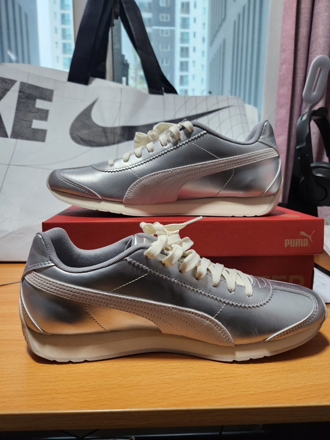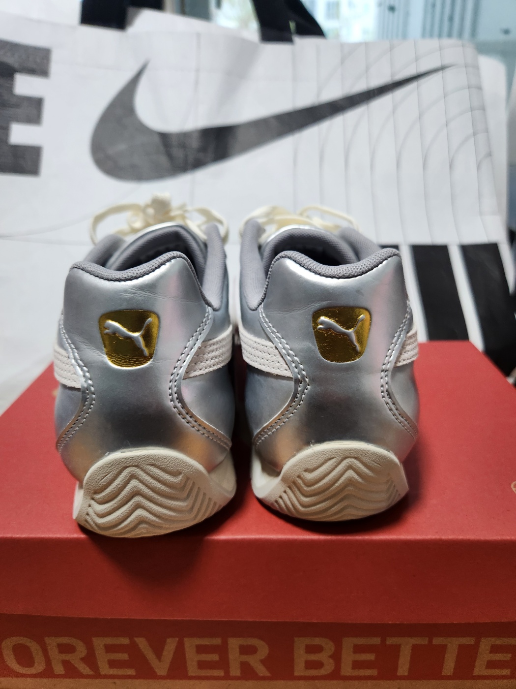 - 사이드에 들어간 푸마 로고 스트라이프는 은근하게 강조된 무광 실버 – 너무 영리해요!