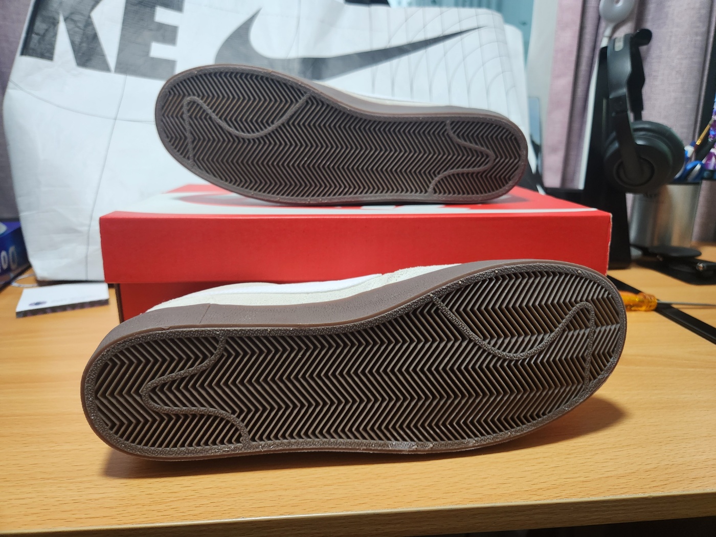 페일 아이보리 바탕에 검/다크 브라운 포인트, 그리고 화이트 미드솔 조합은 한눈에 봐도 쉽게 질리지 않을 색감이라는 게 느껴졌습니다.