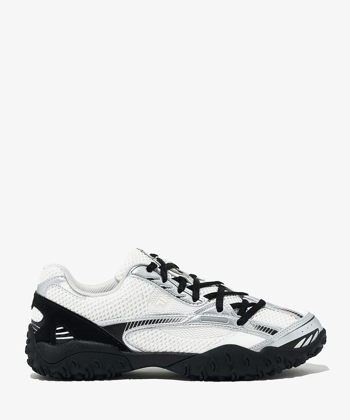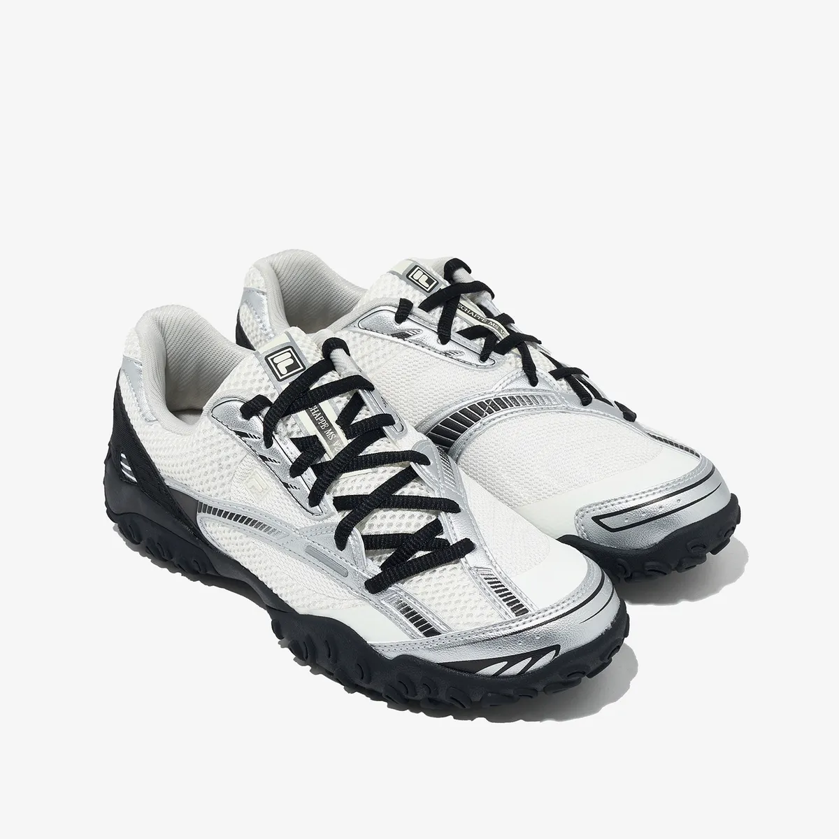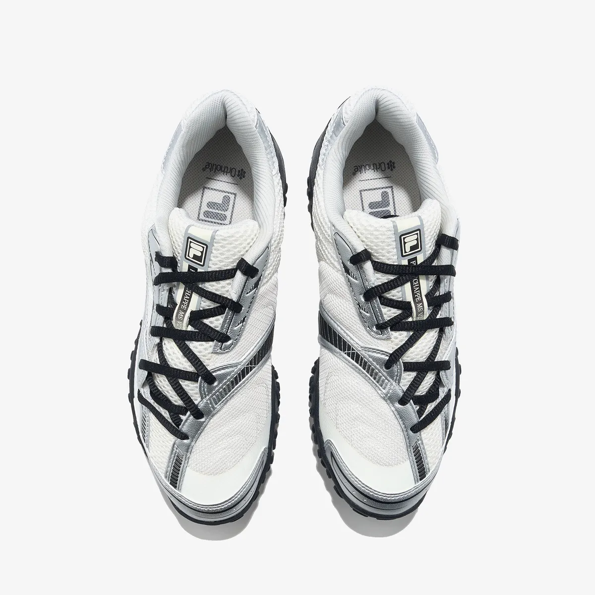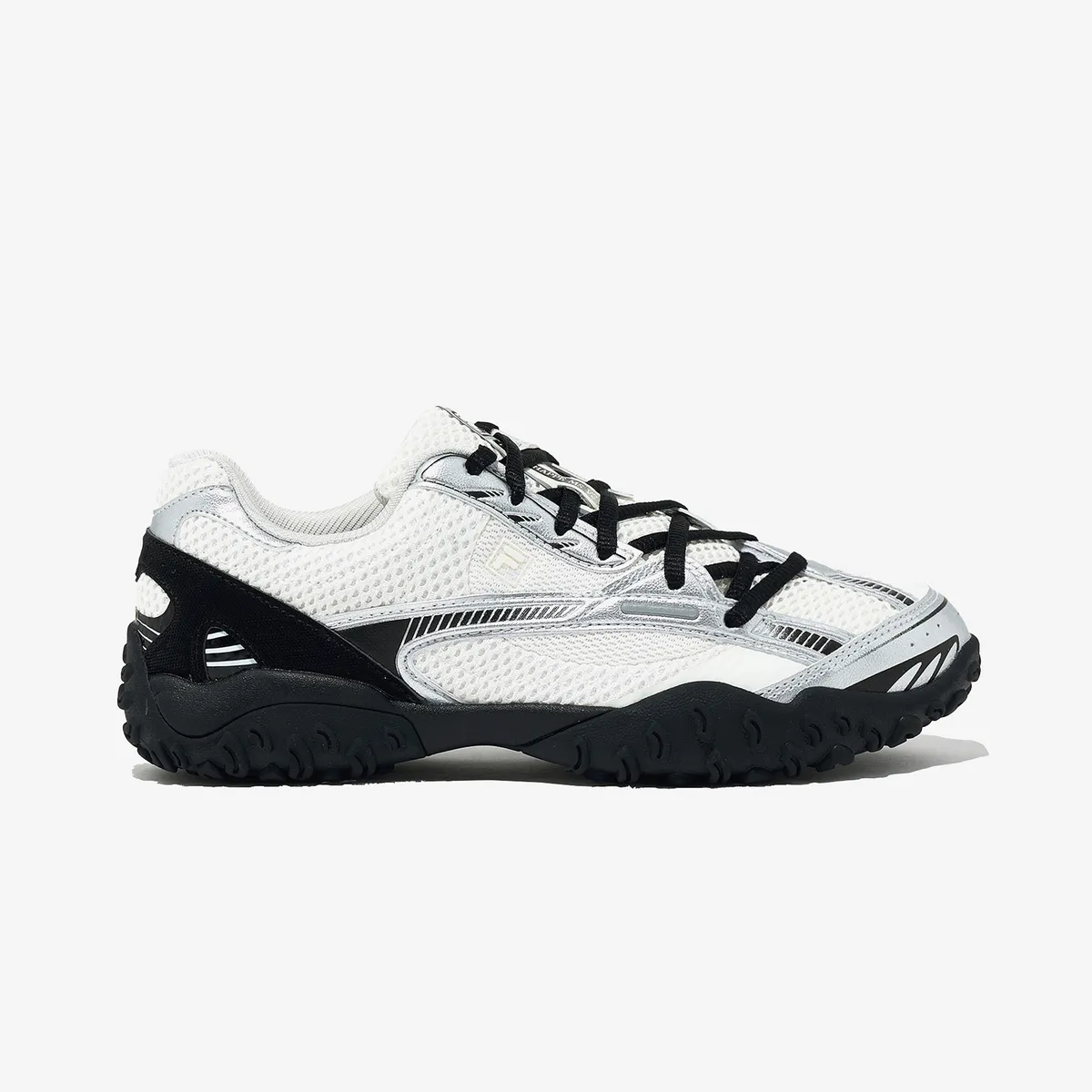 - FILA 로고는 측면과 힐탭에 세련되게 배치되어 브랜드 아이덴티티를 강조합니다.