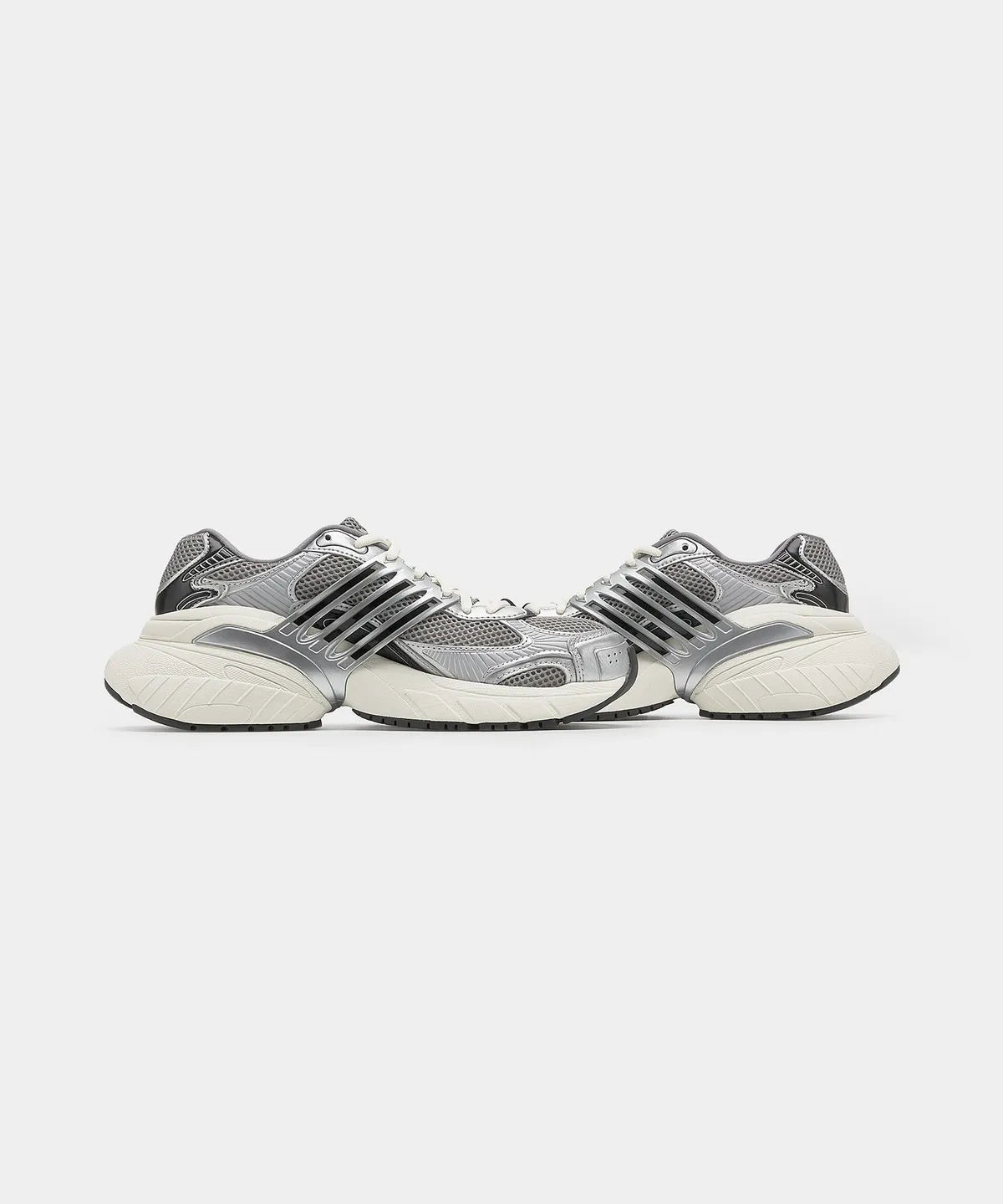 아디스타 XLG는 트렌디한 어글리슈즈 감성을 기본에 깔면서도, 단순한 유행이 아닌 오리지널 레트로의 재해석에 가깝다. 특히 실버 컬러웨이는 요즘 가장 ‘핫’한 색상 중 하나로, 스트리트 룩뿐 아니라 테크웨어, 심지어 포멀룩에까지 믹스매치가 가능하다.