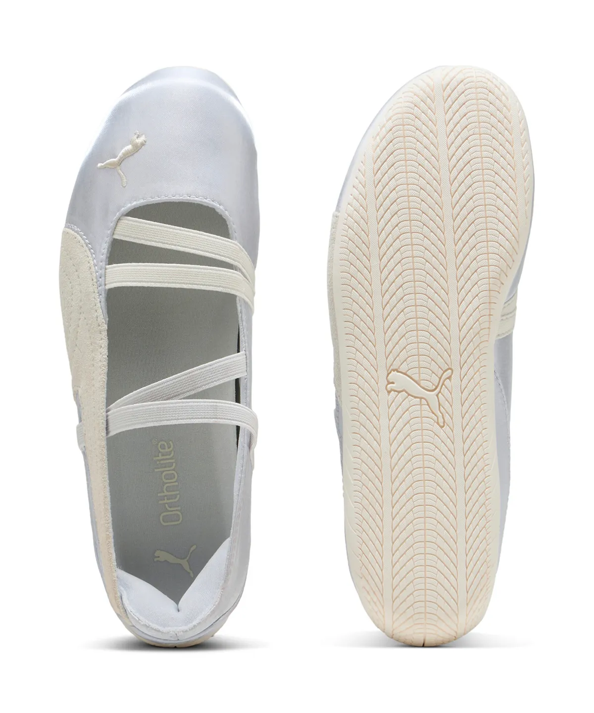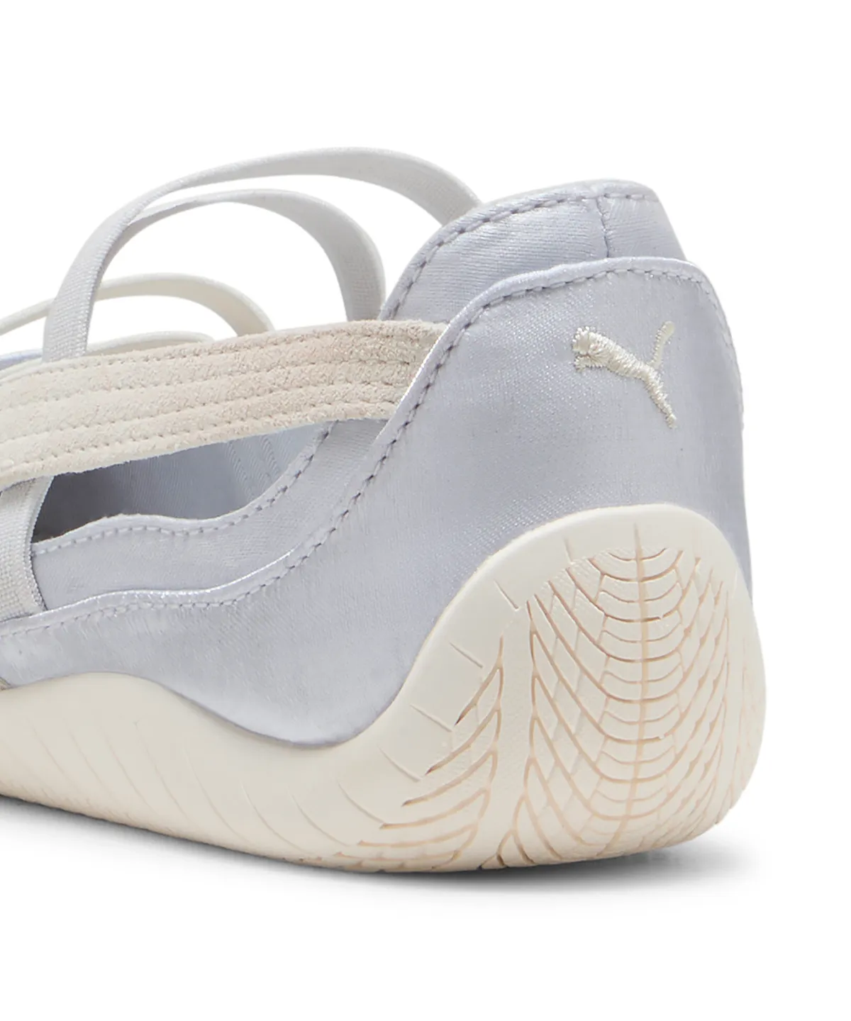 스피드캣 발렛 새틴 실버 모델에서 가장 눈에 띄는 부분은 뭐니 뭐니 해도 텍스처의 조화입니다. 일반적인 가죽이나 스웨이드 소재와 달리, 얇고 부드러운 새틴 텍스처는 여름철 무더위에도 부담 없이 신을 수 있을 만큼 가볍고 통기성이 좋으며, 동시에 시각적으로도 화사한 매력을 풍깁니다.