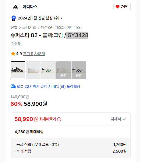 오늘은 아디다스를 대표하는 아이코닉 스니커즈, '슈퍼스타'. 그 중에서도 슈퍼스타 82 - 블랙:크림 (GY3428) 모델은 빈티지 감성과 현대적인 실루엣이 조화를 이루는 제품입니다. 이번 포스팅에서는 제가 무신사에서 이 제품을 저렴하게 구입한 과정과 착용 후 후기, 그리고 왜 이 신발이 2025년에도 여전히 가치 있는 선택인지에 대해 나눠보겠습니다.