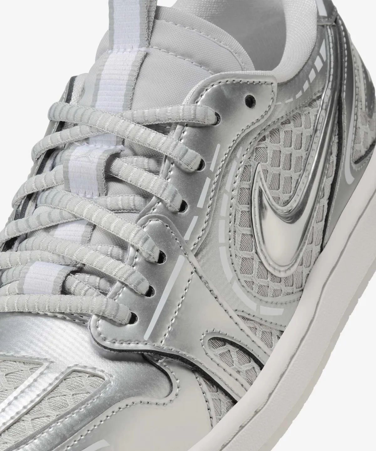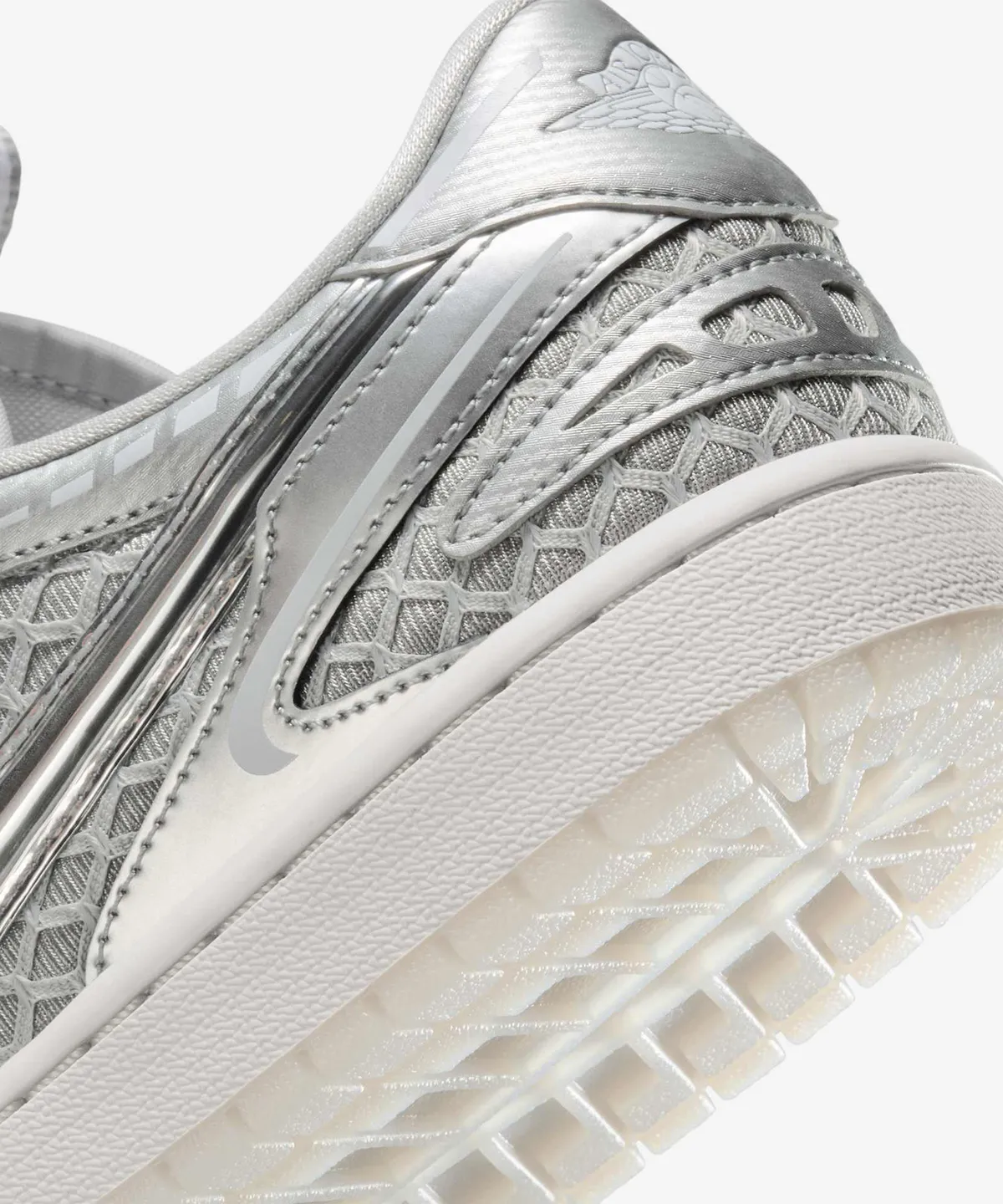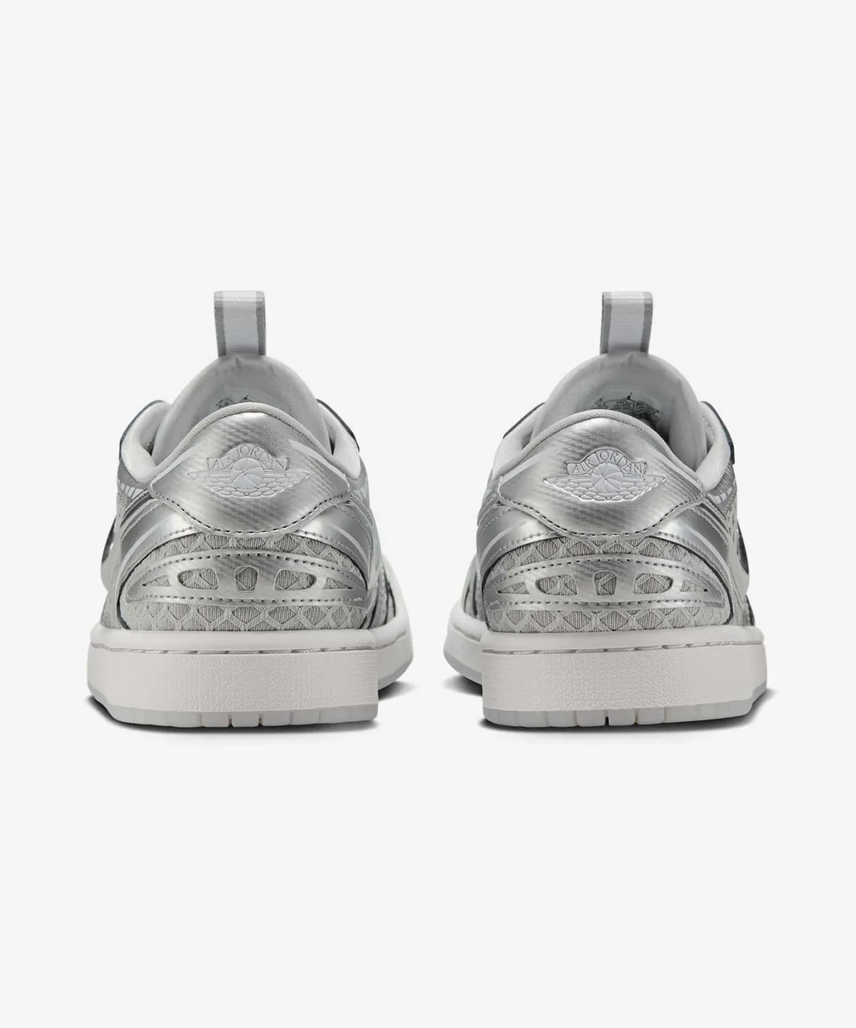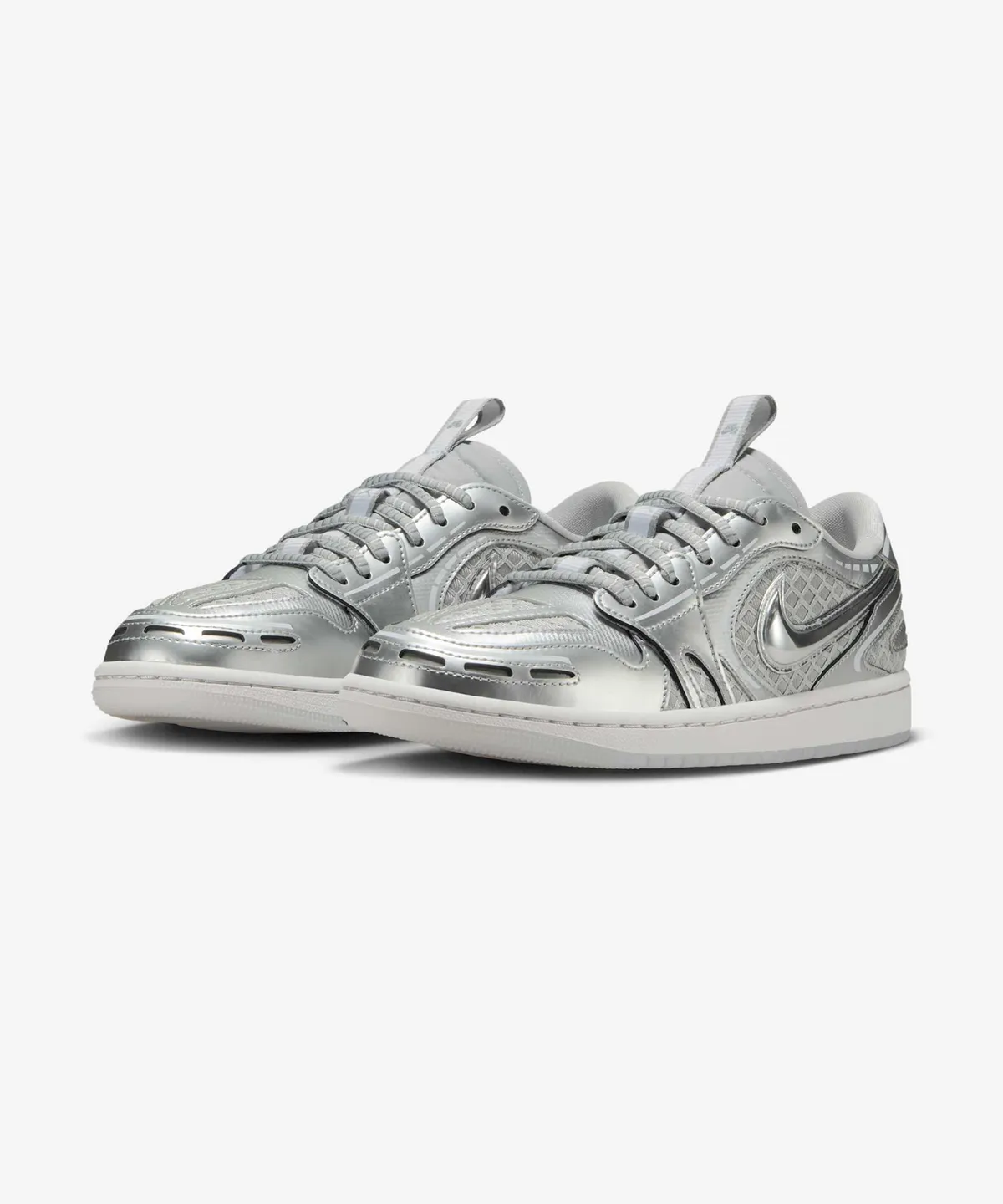 오늘 소개할 모델은 그중에서도 가장 눈길을 사로잡는 **‘나이키 에어 조던 1 로우 메소드 오브 메이크 W (HQ2186-002)’**입니다. 특히 금속성 실버 계열의 톤을 입은 이 조던 1 로우는, 여름 패션을 세련되고 시원하게 마무리해주는 완벽한 선택이었습니다.