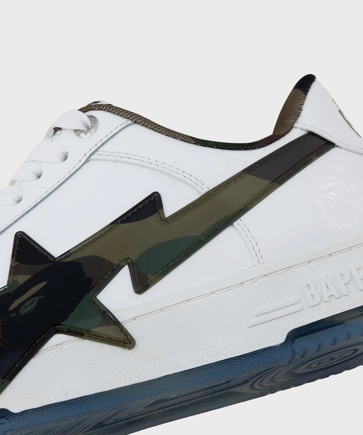 - 베이프 스타 OS #2 M2 WHITE: 데님 팬츠, 슬랙스, 심플 티셔츠 등 다양한 코디에 매칭 가능