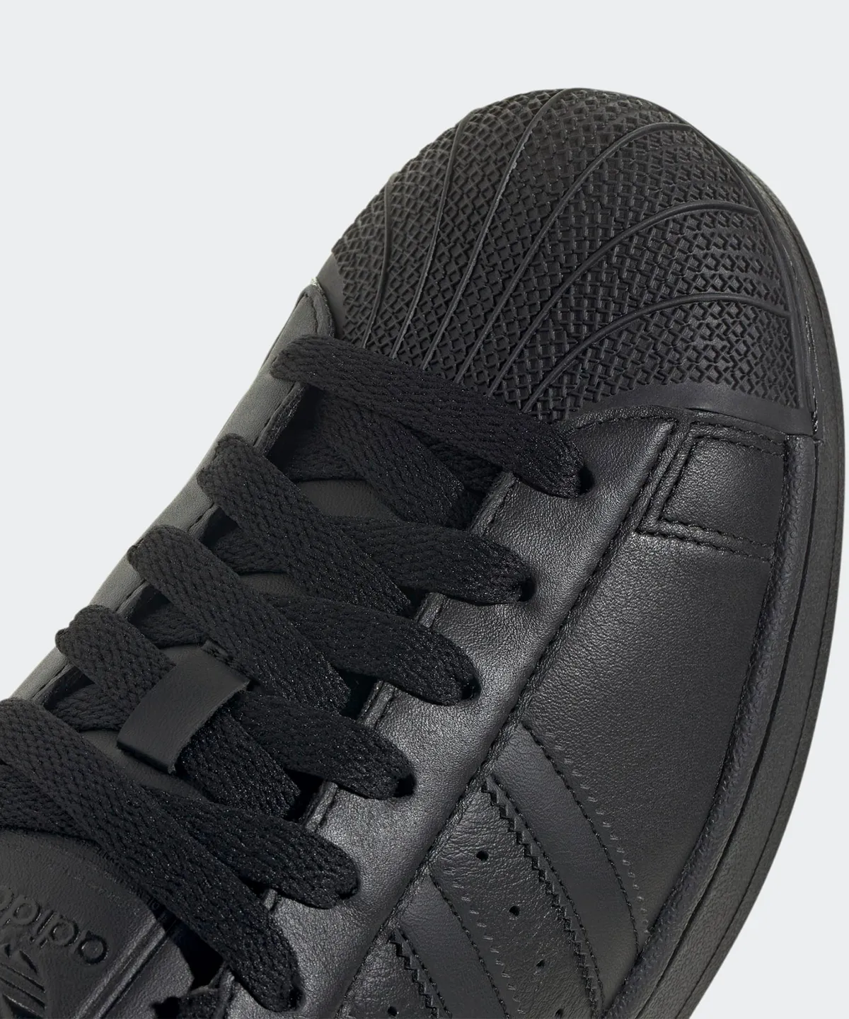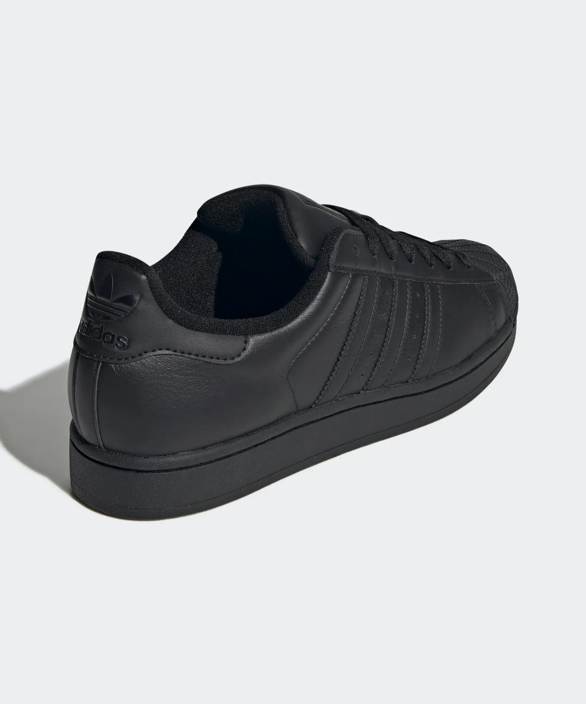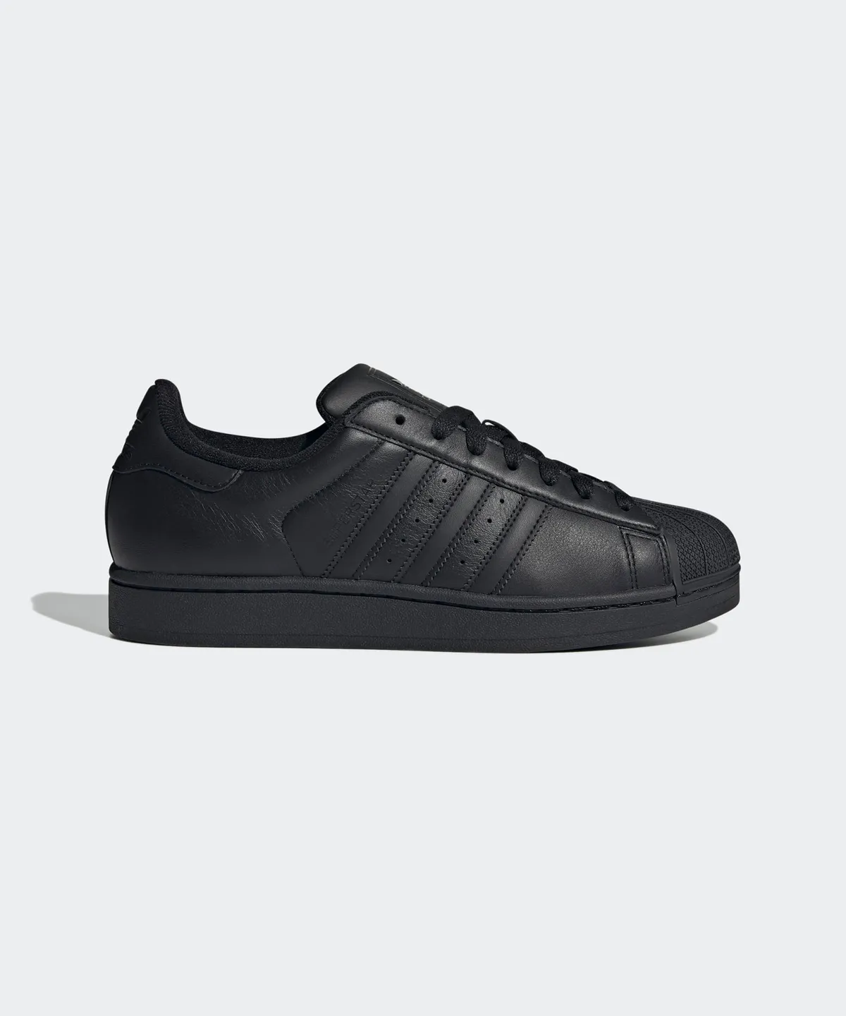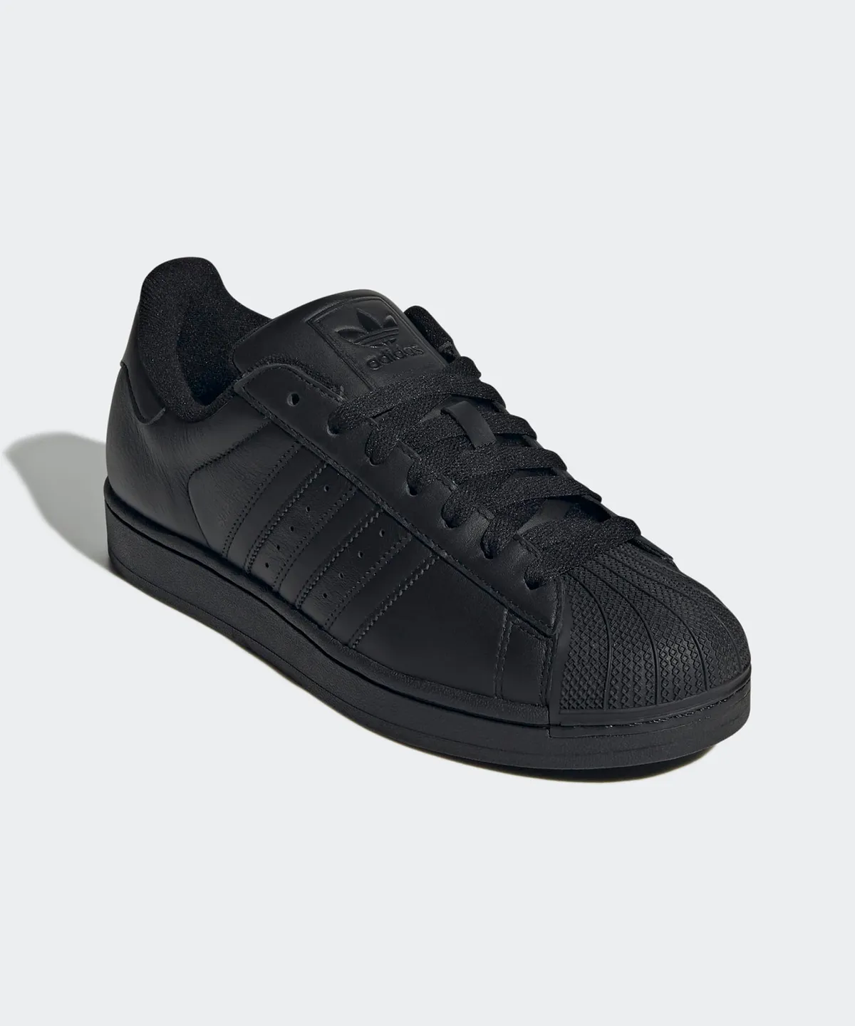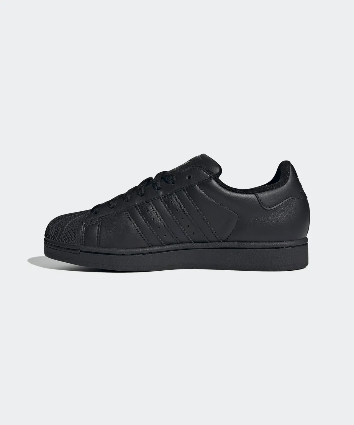 아디다스 슈퍼스타 II JI0081 블랙은 가죽 갑피와 시그니처 셸토 디자인이 특징입니다. 블랙 컬러의 베이스 위에 화이트 삼선 스트라이프가 선명하게 들어가 있어, 어디에나 잘 어울리는 조화로운 디자인을 자랑합니다. 특히 이 모델은 기본 스니커즈의 상징으로 불릴 만큼 활용도가 높아 "기본 운동화", "기본 스니커즈"를 찾는 분들에게 최적의 선택입니다.