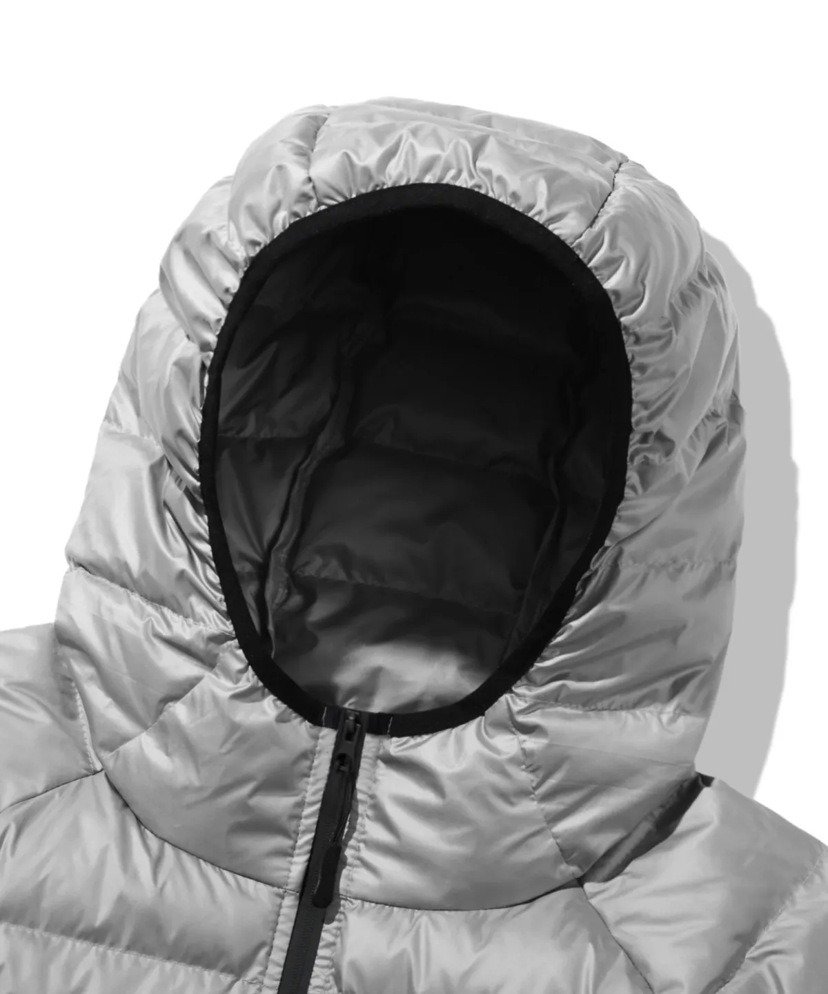 트릴리온 라이트 후디 패딩 자켓은 밝은 회색이 아닌, 중간톤의 미드 그레이 컬러로 구성되어 있다.