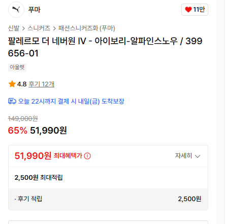 푸마 정가 대비 거의 40~50% 할인 수준이죠.
