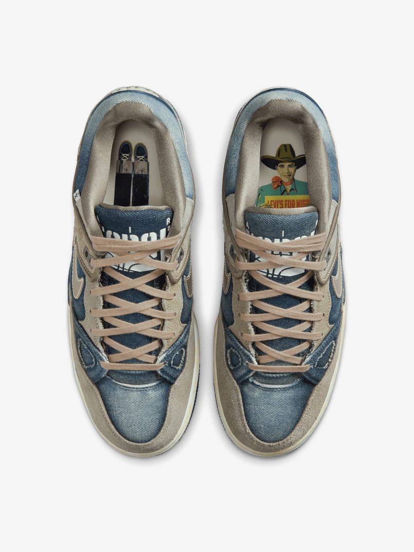 The vintage texture, frayed edges, and subtle color gradation evoke the same warmth as a perfectly worn-in pair of jeans. This balance of rugged denim and classic Nike leather panels makes it instantly recognizable yet refreshingly new.