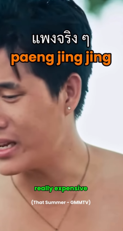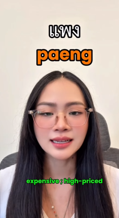 - แพง (pʰɛ̄ːŋ): **'비싼', '가격이 높은'**이라는 뜻의 형용사입니다.