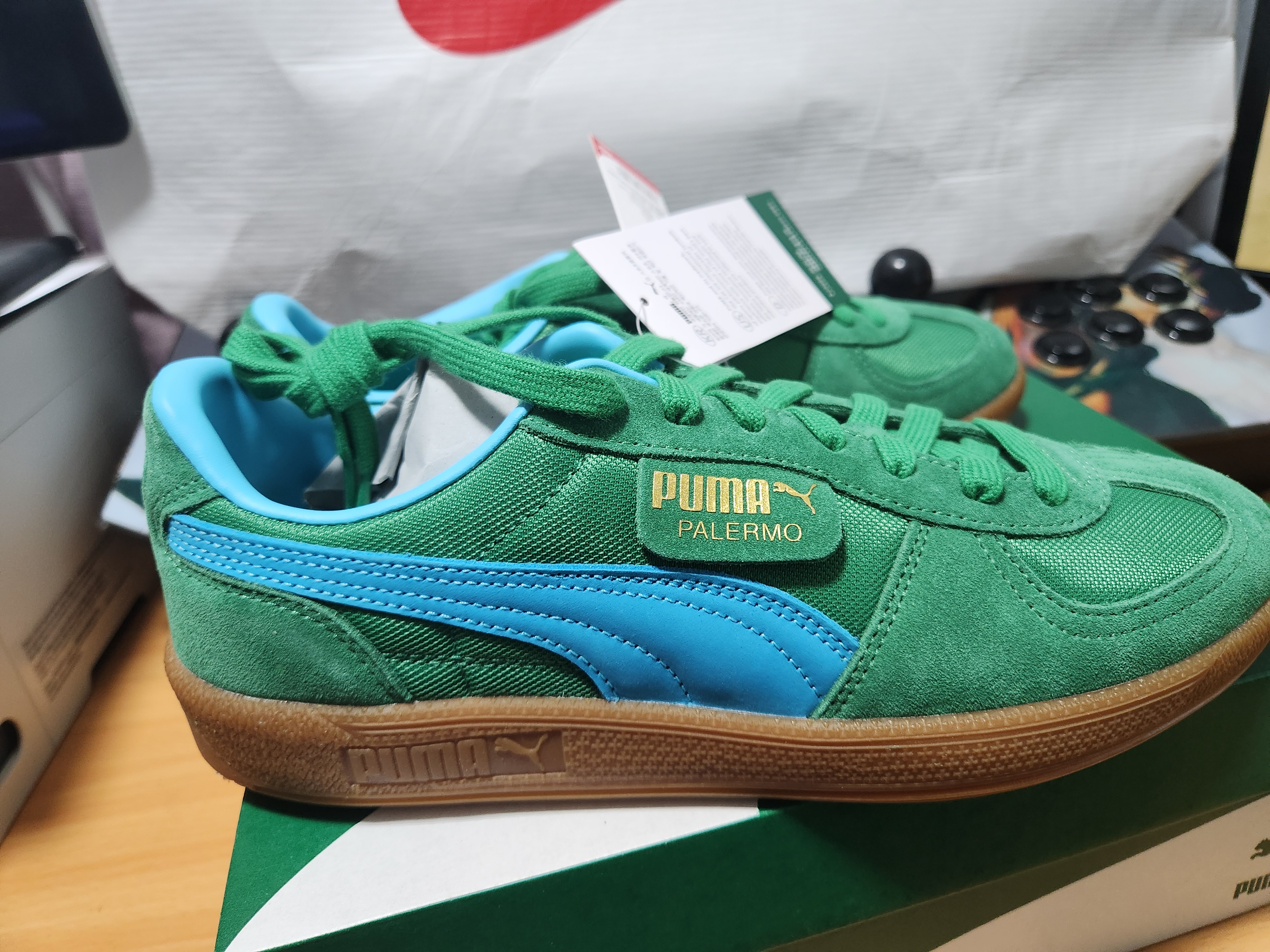 - 'Palermo' 골드 브랜딩: 측면에 새겨진 금색 'Palermo' 레터링은 고급스러움을 더하며, 푸마의 시그니처인 폼스트라이프(Formstrip)와 조화를 이룹니다