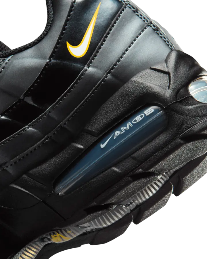 에어 맥스 95는 인체의 근육과 척추에서 영감을 받은 레이어드 디자인으로 유명합니다. 특유의 곡선형 패널 구조는 처음 등장했을 때부터 지금까지 강렬한 인상을 남기며, 시간이 지나도 전혀 촌스럽지 않은 실루엣을 유지하고 있습니다. 이번 빅 버블 SE 블랙 모델은 이러한 디자인에 한층 더 깊이 있는 분위기를 더했습니다.