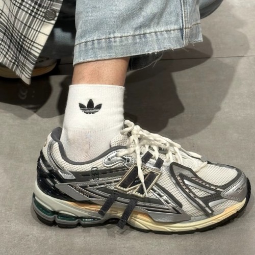 일반적인 1906R 모델과 차별화되는 'A' 라인업의 특징은 소재의 레이어링입니다. 메쉬 소재 위에 덧대어진 실버 프레임들이 입체감을 만들어내어 신발을 신었을 때 발이 작아 보이면서도 탄탄한 인상을 줍니다. 특히 측면의 N로고와 연결된 N-lock 시스템은 디자인적 요소뿐만 아니라 발등을 견고하게 잡아주는 기능성까지 수행합니다. 뒷축의 TPU 힐 카운터는 안정감을 더해주며 시각적으로도 미래지향적인 분위기를 자아냅니다.