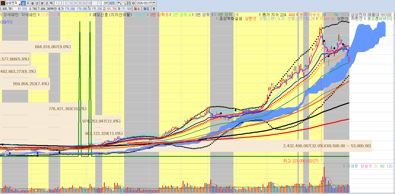 | 중기 (3~6개월) | 220,000원 | 전고점 부근의 강력한 저항대입니다. 하반기 실적 가시성이 확보될 때 다시 도전할 것으로 보이며, 이 구간에서 대규모 물량 소화가 예상됩니다. |