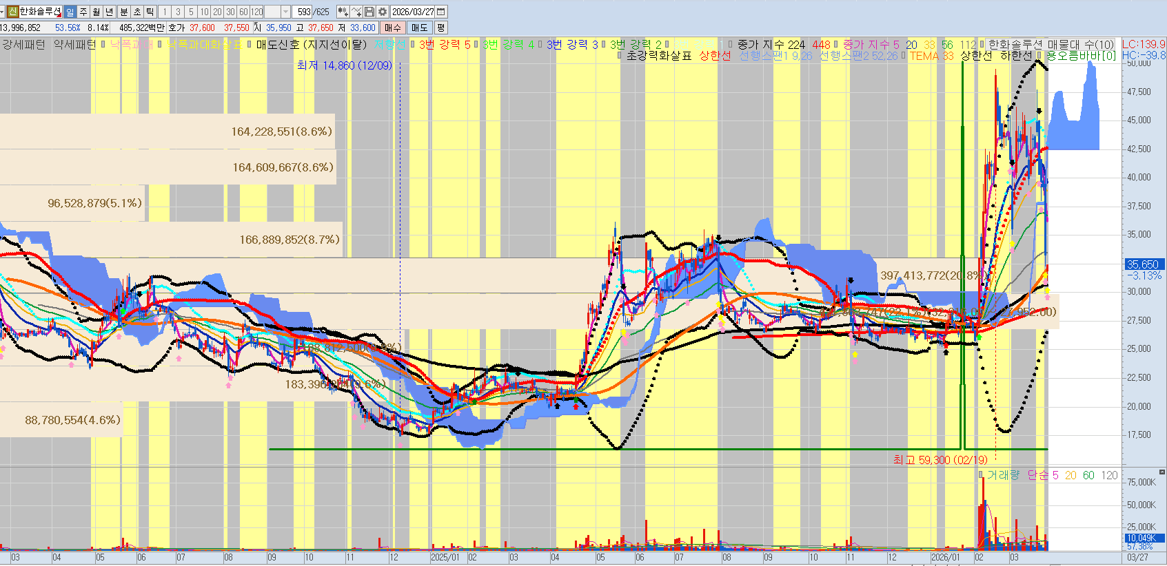 | 중기 (3~6개월) | 51,000원 | 차트상 가장 두꺼운 매물대가 포진한 구간입니다. 업황 개선 뉴스나 실적 호조가 뒷받침되어야 안착이 가능합니다. |
